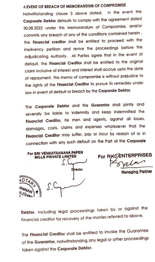 RKJ Enterprises Vs. Sanjeevi S -17 NCLT Chennai Bench