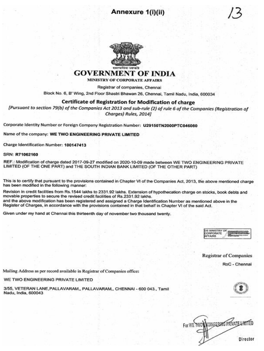 We Two Engineering Pvt. Ltd. – 1 NCLT Chennai Bench